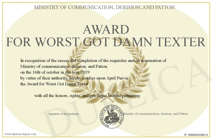 Certificate-degree can have your Award for Worst Got Damn Texter