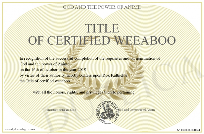 Certificate-degree can have your Title of certified weeaboo