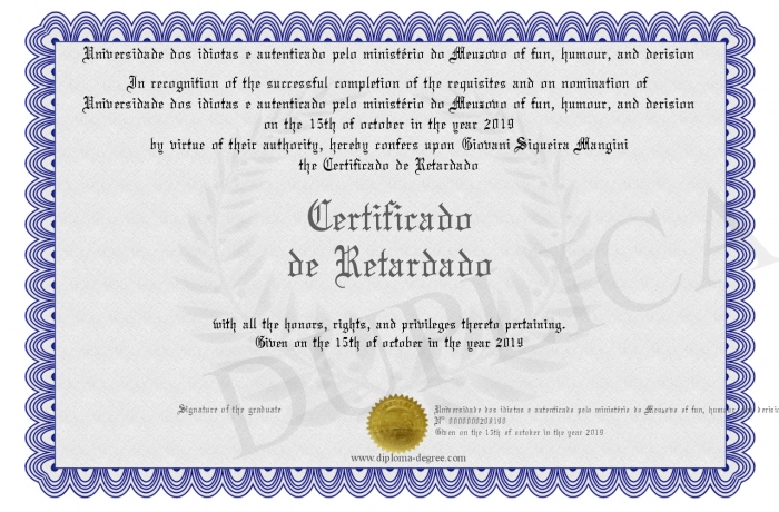 delivered to his owner by Universidade dos idiotas e autenticado pelo ministério do Meuzovo of fun, humour, and derision !