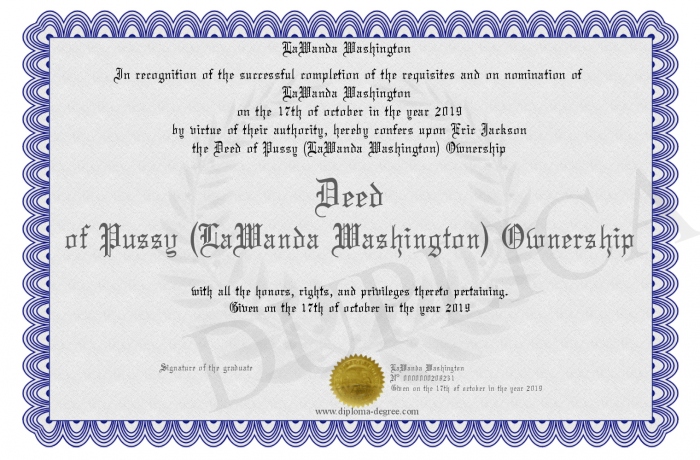 Certificate-degree can have your Deed of Pussy (LaWanda Washington) Ownership