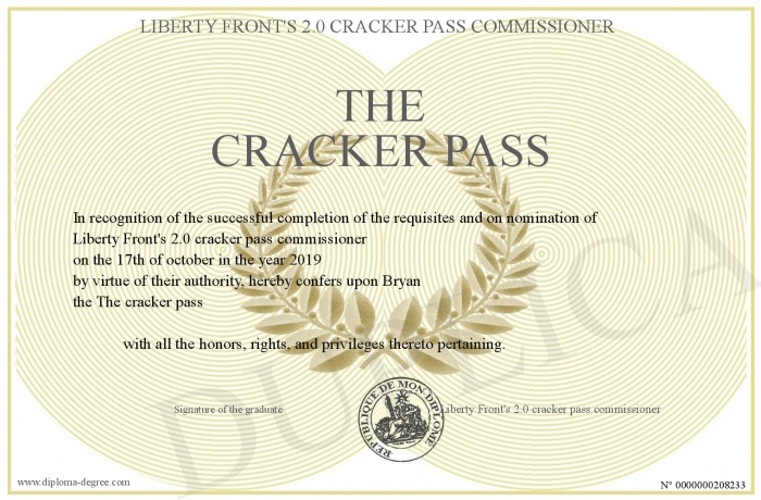delivered to his owner by Liberty Front's 2.0 cracker pass commissioner !