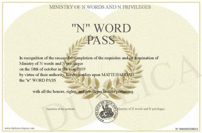 delivered to his owner by Ministry of N words and N privileges !