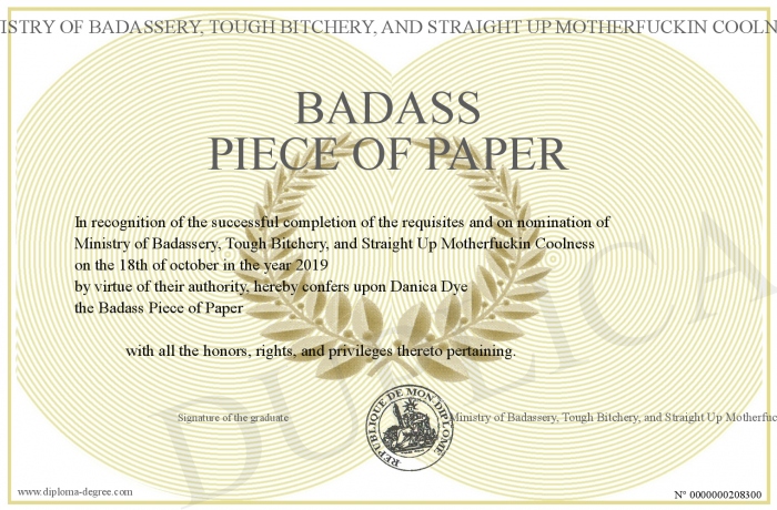 delivered to his owner by Ministry of Badassery, Tough Bitchery, and Straight Up Motherfuckin Coolness !