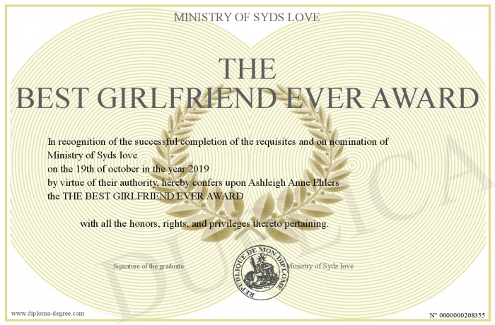 Certificate-degree can have your THE BEST GIRLFRIEND EVER AWARD