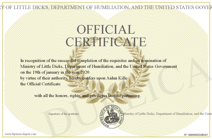 delivered to his owner by Ministry of Little Dicks, Department of Humiliation, and the United States Government !