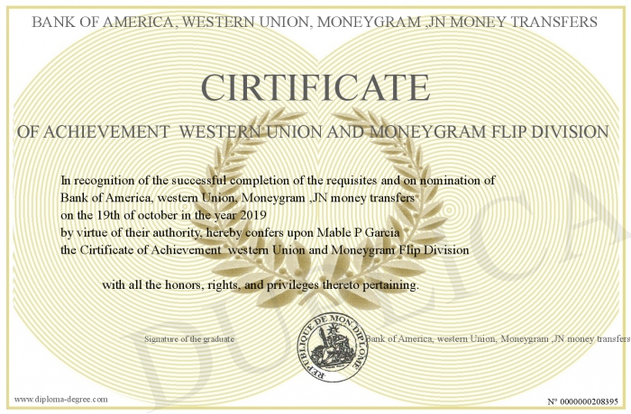 Certificate-degree can have your Cirtificate of Achievement western Union and Moneygram Flip Division