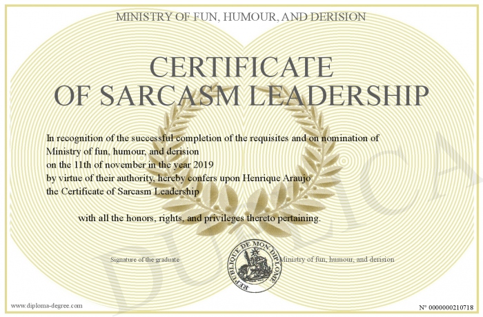 Certificate-degree can have your Certificate of Sarcasm Leadership