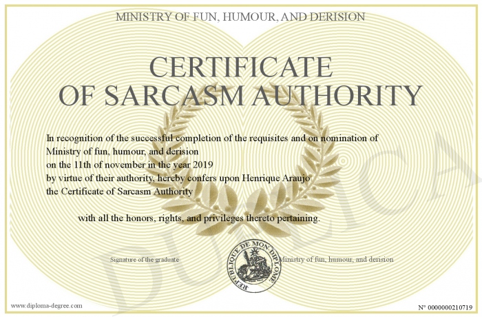 Certificate-degree can have your Certificate of Sarcasm Authority