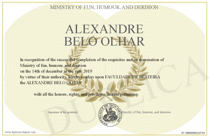 Certificate-degree can have your ALEXANDRE BELO OLHAR