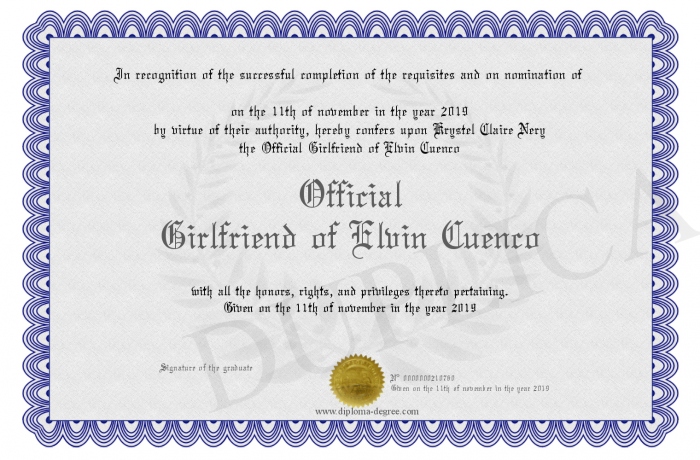 Certificate-degree can have your Official Girlfriend of Elvin Cuenco