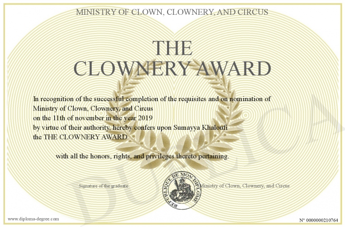 delivered to his owner by Ministry of Clown, Clownery, and Circus !