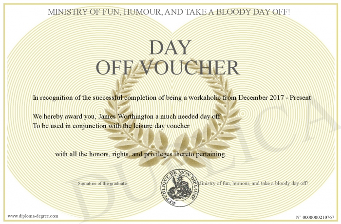 delivered to his owner by Ministry of fun, humour, and take a bloody day off! !