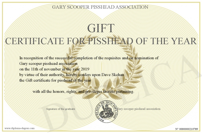 Certificate-degree can have your Gift certificate for pisshead of the year