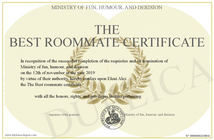 Certificate-degree can have your The Best roommate certificate