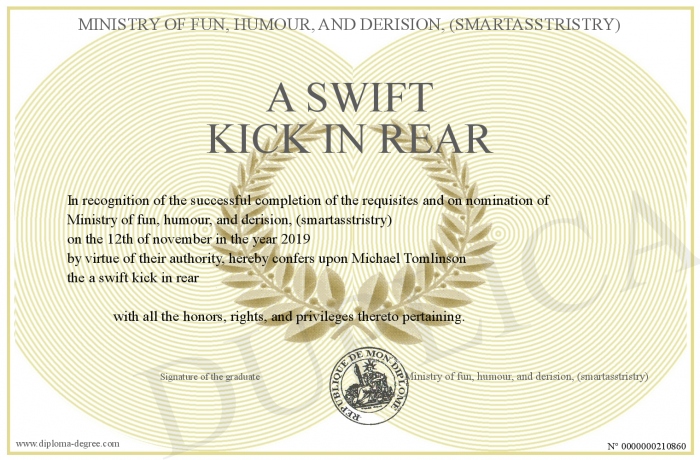 delivered to his owner by Ministry of fun, humour, and derision, (smartasstristry) !