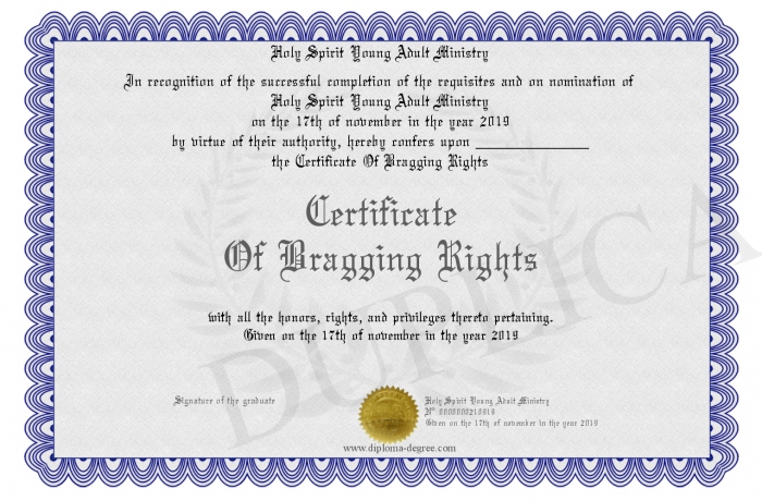 delivered to his owner by Holy Spirit Young Adult Ministry !