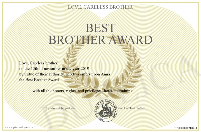Certificate-degree can have your Best Brother Award