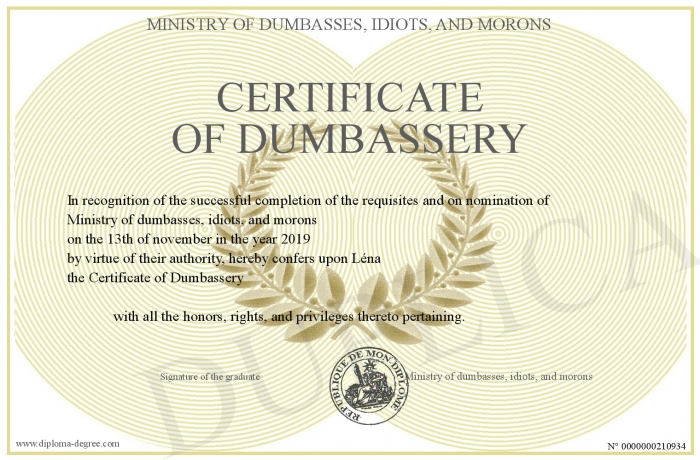Certificate-degree can have your Certificate of Dumbassery