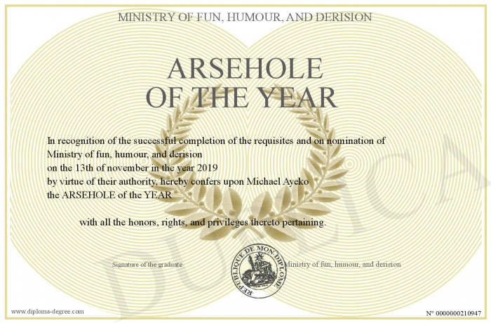 Certificate-degree can have your ARSEHOLE of the YEAR