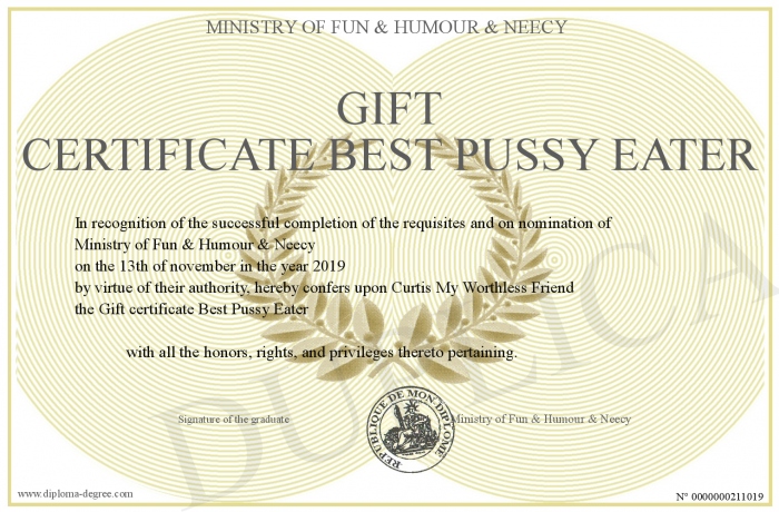 Certificate-degree can have your Gift certificate Best Pussy Eater