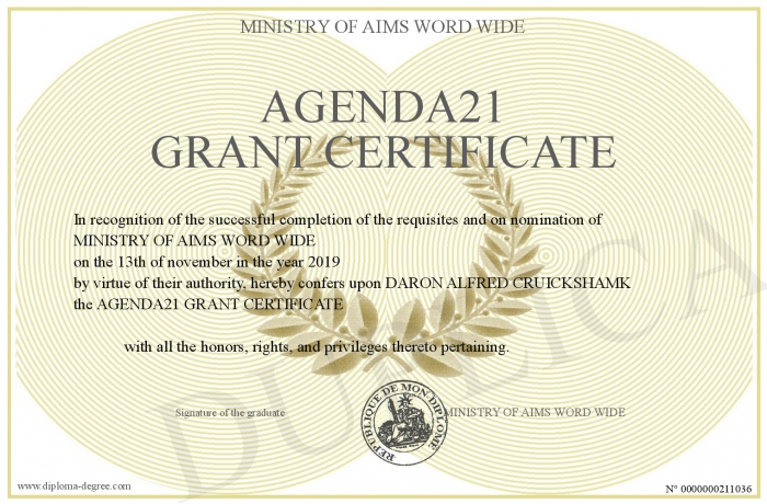 Certificate-degree can have your AGENDA21 GRANT CERTIFICATE