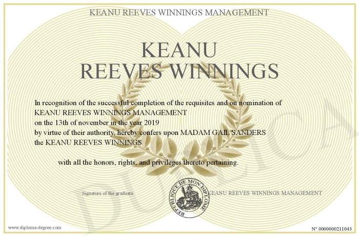 Certificate-degree can have your KEANU REEVES WINNINGS
