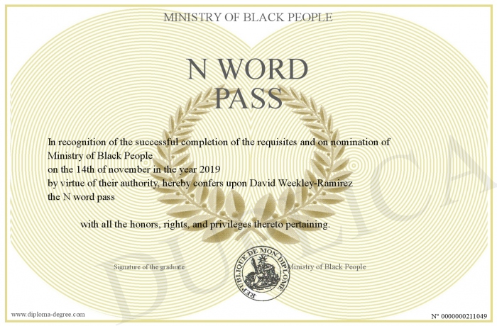 Certificate-degree can have your N word pass