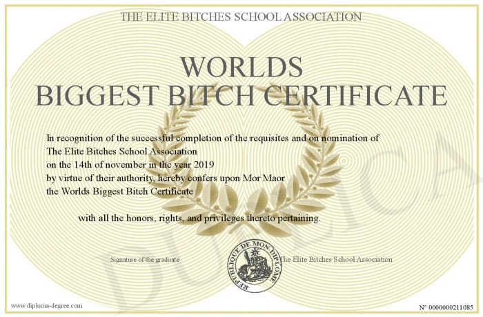 Certificate-degree can have your Worlds Biggest Bitch Certificate