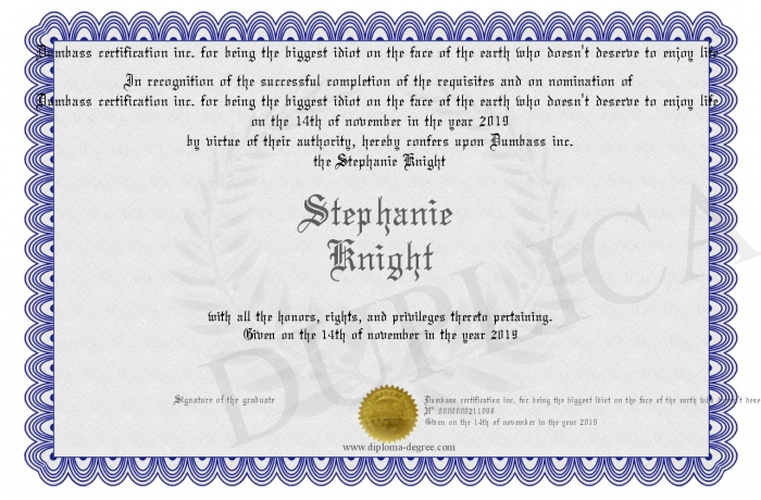 delivered to his owner by Dumbass certification inc. for being the biggest idiot on the face of the earth who doesn't deserve to enjoy life !