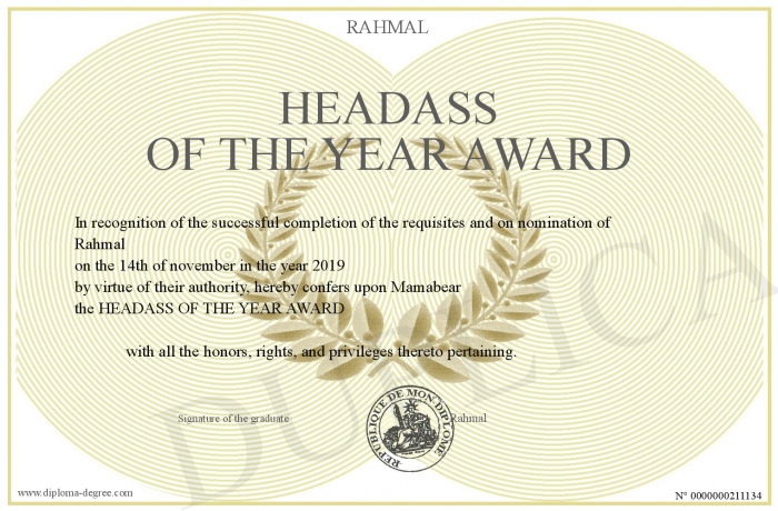 Certificate-degree can have your HEADASS OF THE YEAR AWARD