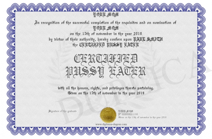 Certificate-degree can have your CERTIFIED PUSSY EATER