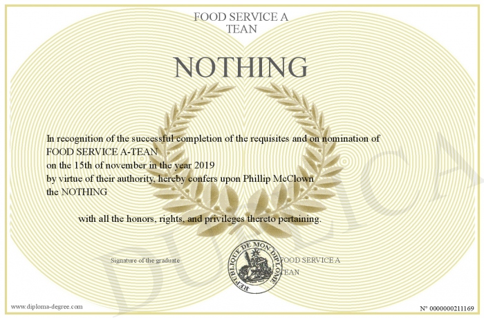 delivered to his owner by FOOD SERVICE A-TEAN !