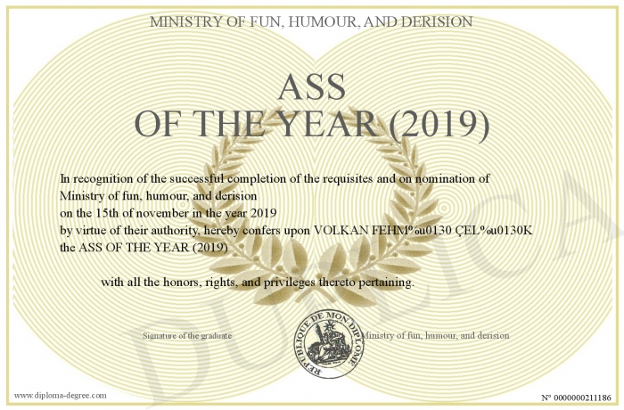 Certificate-degree can have your ASS OF THE YEAR (2019)