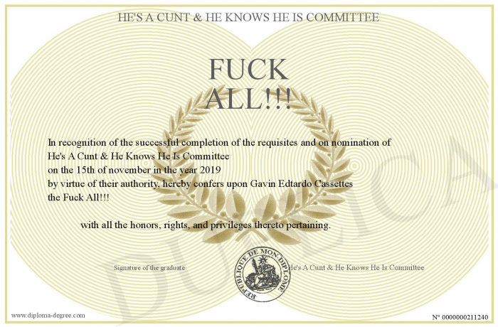 delivered to his owner by He's A Cunt & He Knows He Is Committee !