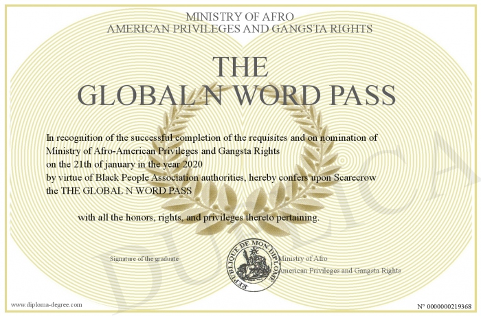 Certificate-degree can have your THE GLOBAL N WORD PASS