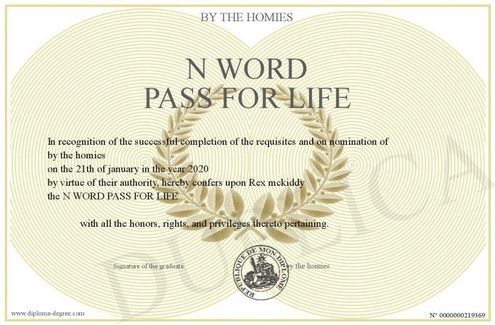 Certificate-degree can have your N WORD PASS FOR LIFE