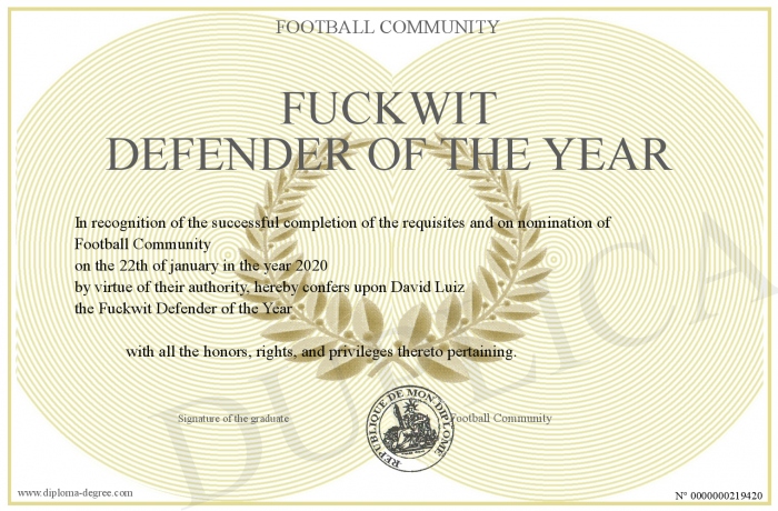 Certificate-degree can have your Fuckwit Defender of the Year