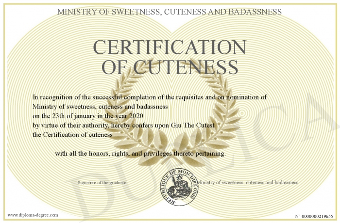 delivered to his owner by Ministry of sweetness, cuteness and badassness !