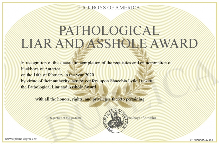 Certificate-degree can have your Pathological Liar and Asshole Award