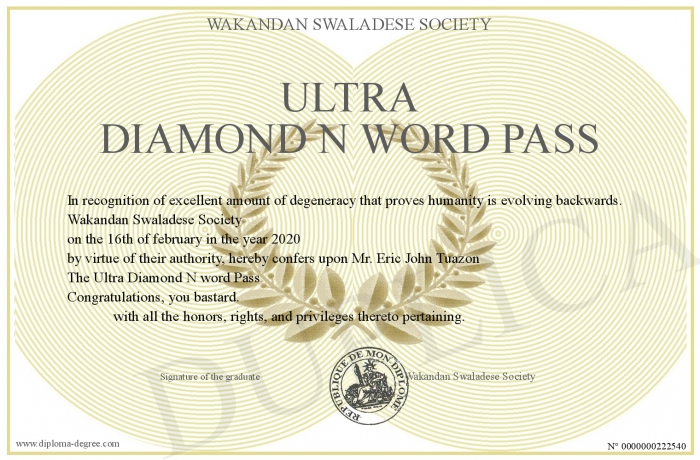 Certificate-degree can have your Ultra Diamond N word Pass
