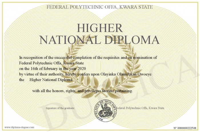 Certificate-degree can have your Higher National Diploma
