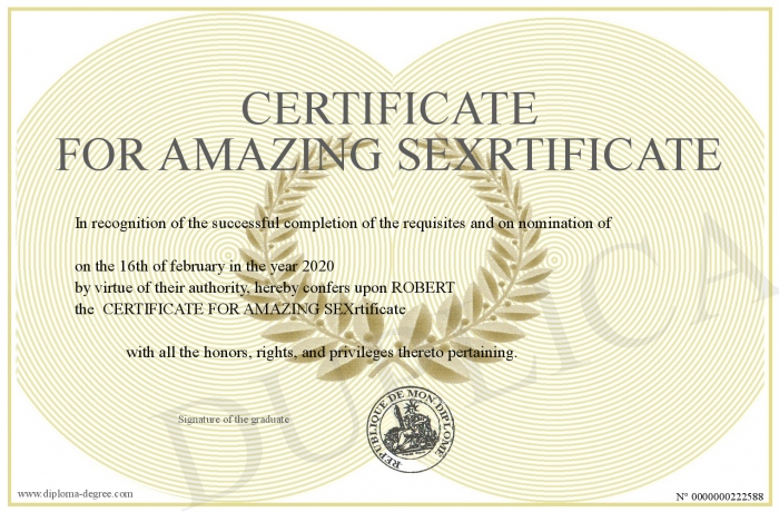 Certificate-degree can have your CERTIFICATE FOR AMAZING SEXrtificate
