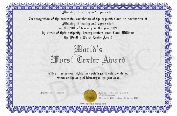 Certificate-degree can have your World's Worst Texter Award
