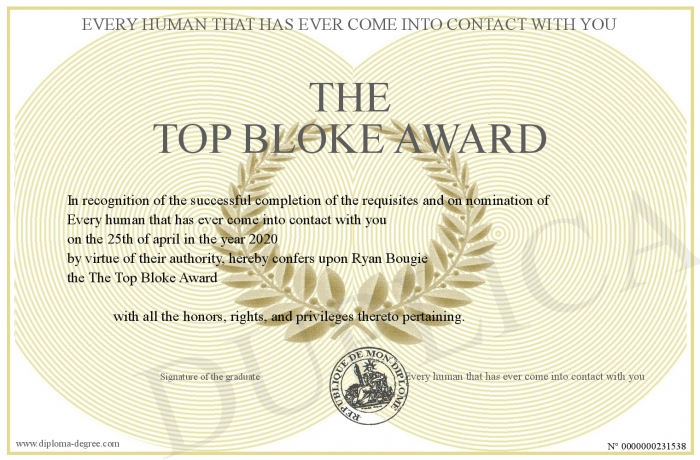 Certificate-degree can have your The Top Bloke Award