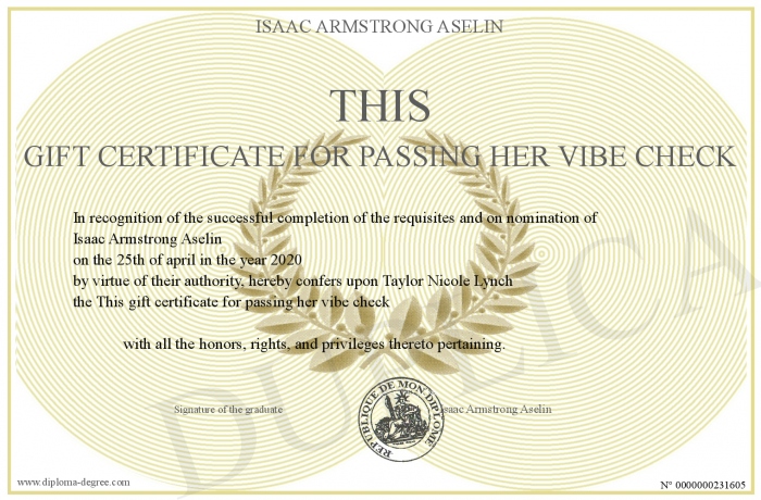 Certificate-degree can have your This gift certificate for passing her vibe check
