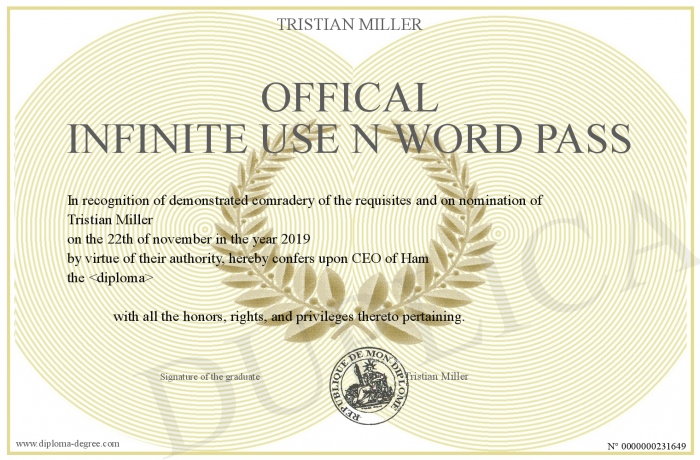 Certificate-degree can have your OFFICAL INFINITE USE N WORD PASS