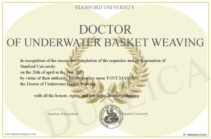 Certificate-degree can have your Doctor of Underwater Basket Weaving