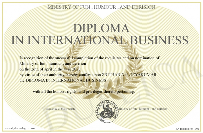 Certificate-degree can have your DIPLOMA IN INTERNATIONAL BUSINESS