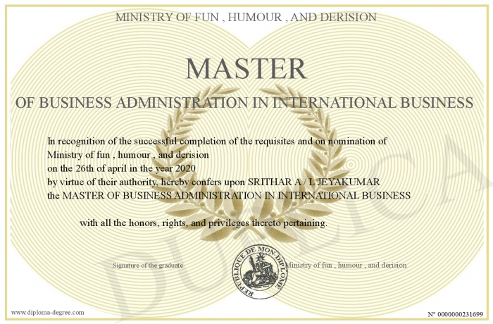 Certificate-degree can have your MASTER OF BUSINESS ADMINISTRATION IN INTERNATIONAL BUSINESS