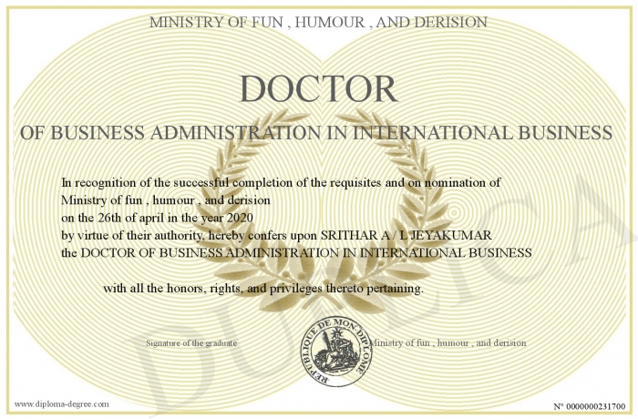 Certificate-degree can have your DOCTOR OF BUSINESS ADMINISTRATION IN INTERNATIONAL BUSINESS
